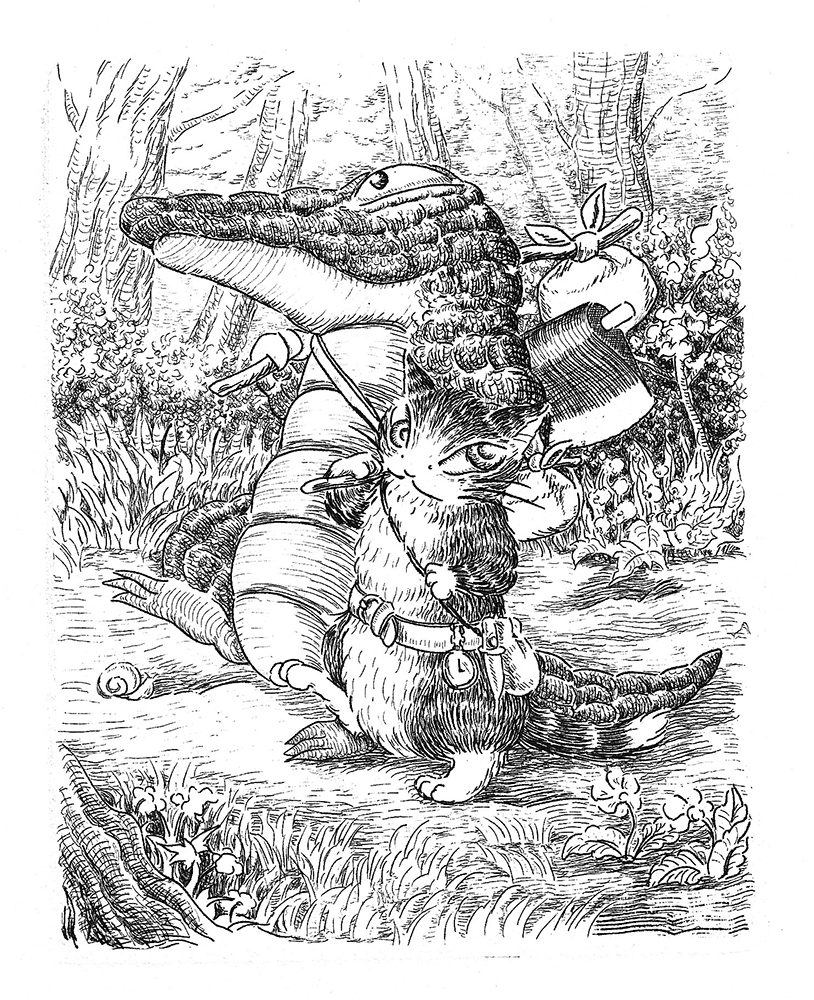展示されるのは、「猫のダヤン」長編ファンタジーの初期3作——『ダヤン、わちふぃーるどへ』(1999年)をはじめとする作品の挿絵として制作されたもの。いずれも黒一色の作品で、カラフルなパステル画とはまたひと味違った、銅版画ならではの味わいがあります。