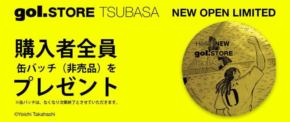 gol.STORE TSUBASAオープンを記念して、4月1日より購入者全員にナトゥレーザの缶バッチ(非売品 / 数量限定)がプレゼントされます。