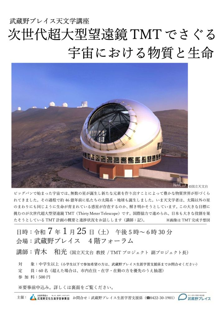 武蔵野プレイス天文学講座「次世代超大型望遠鏡TMTでさぐる宇宙における物質と生命」