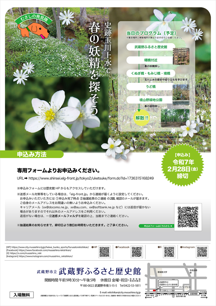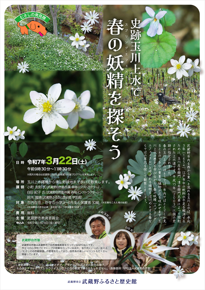 むさしの発見隊「史跡玉川上水で春の妖精(スプリング・エフェメラル)を探そう」