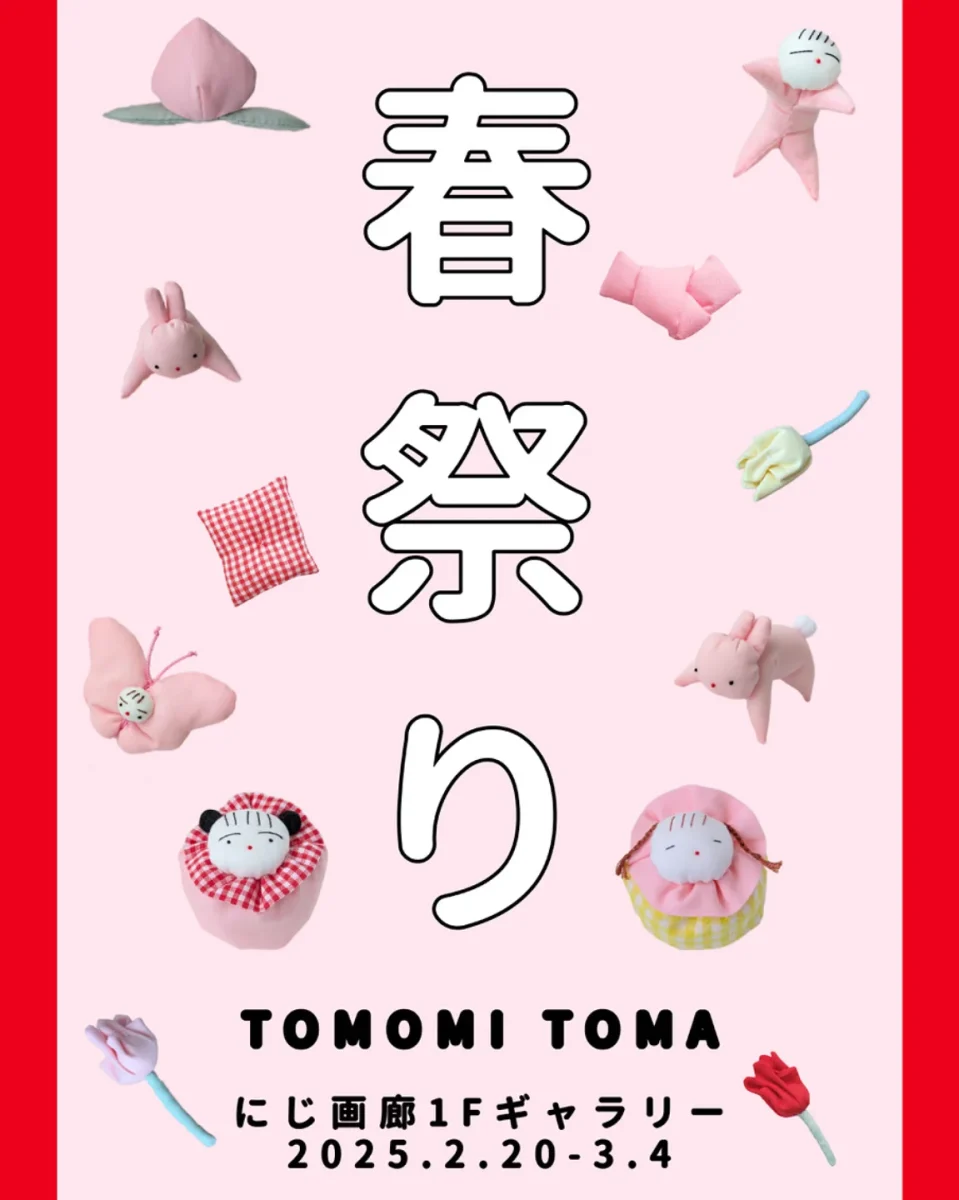 TOMOMI TOMA 春祭り 開催日 2025年2月20日(木)〜3月4日(火) ※水曜定休 時間 12:00〜20:00(最終日18:00まで) 会場 にじ画廊〒180‐0004 東京都武蔵野市吉祥寺本町2‐2‐10 JR中央線 吉祥寺駅より徒歩4分 Web http://nijigaro.com/minispace.html