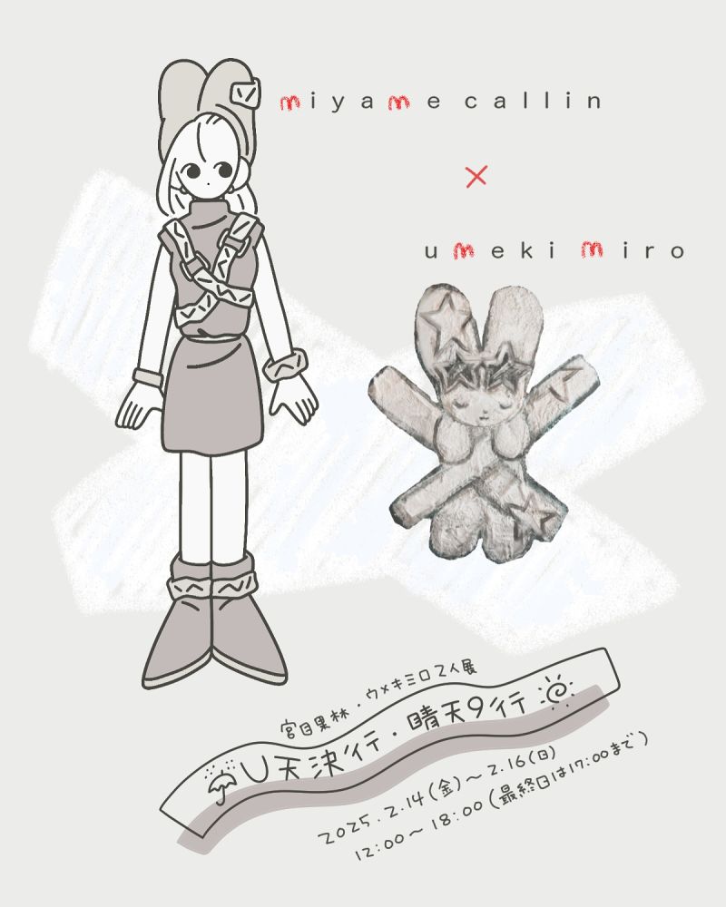 U天決行・晴天9行 開催日 2025年2月14日(金)〜16日(日) 時間 12:00〜18:00(最終日17:00まで) 会場 GALLERY IRO〒180-0004 東京都武蔵野市吉祥寺本町1-37-7-101 吉祥寺駅より西荻窪方面へ歩いて7分程度、五日市街道沿い。 Web https://1-6.jp/20250214_3