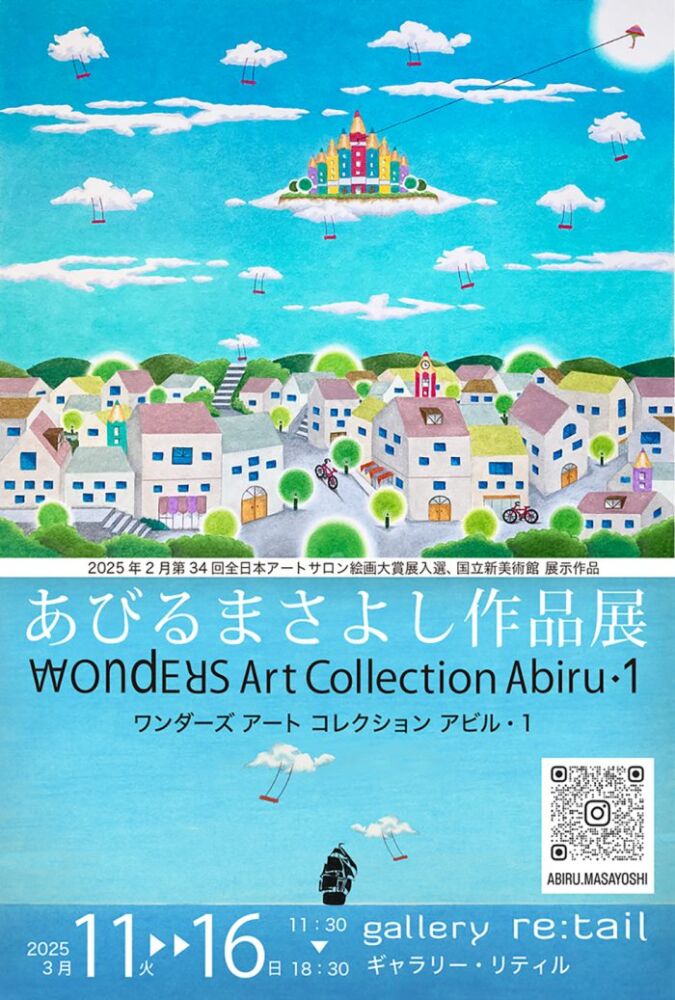 あびるまさよし作品展 Wonders Art Collection Abiru 開催日 2025年3月11日(火)〜16日(日) 時間 11:30~18:30(最終日16:00まで) 会場 gallery re:tail〒180-0004 東京都武蔵野市吉祥寺本町3-12-9 潤マンション103 Web http://thetail.jp/archives/16680