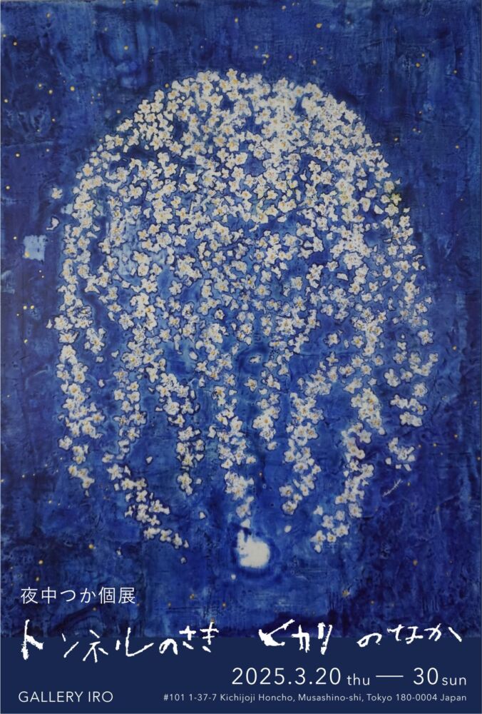 夜中つか個展 トンネルのさき ヒカリのなか 開催日 2025年3月20日(木・祝)〜30日(日) ※3月24日(月)〜27日(木)休み 時間 12:00〜18:00(最終日17:00まで) 会場 GALLERY IRO〒180-0004 東京都武蔵野市吉祥寺本町1-37-7-101 吉祥寺駅より西荻窪方面へ歩いて7分程度、五日市街道沿い。 Web https://1-6.jp/yonakatsuka Instagram @yonaka.tsuka