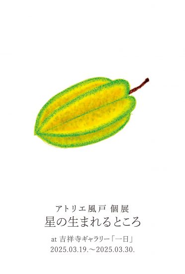 アトリエ風戸 個展 星の生まれるところ 開催日 2025年3月19日(水)〜30日(日) ※火曜定休 時間 12:00〜19:00(最終日17:00まで) 会場 一日〒180-0004 東京都武蔵野市吉祥寺本町2-1-3 石上ビル1F Web http://www.100hyakunen.com/news/ichinichi Instagram @saya_01life