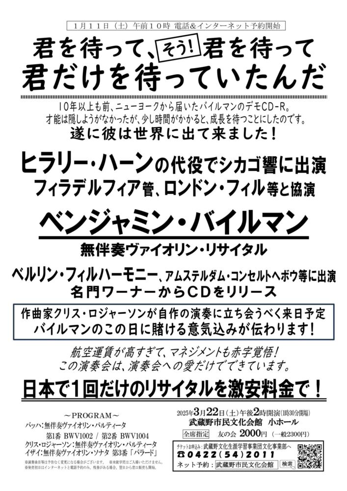 ベンジャミン・バイルマン 無伴奏ヴァイオリン・リサイタル