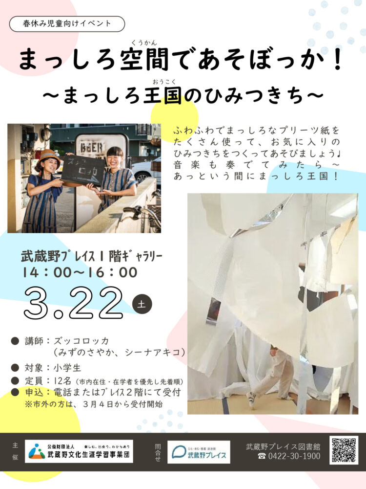 春休み児童向けイベント「まっしろ空間であそぼっか!~まっしろ王国のひみつきち~」