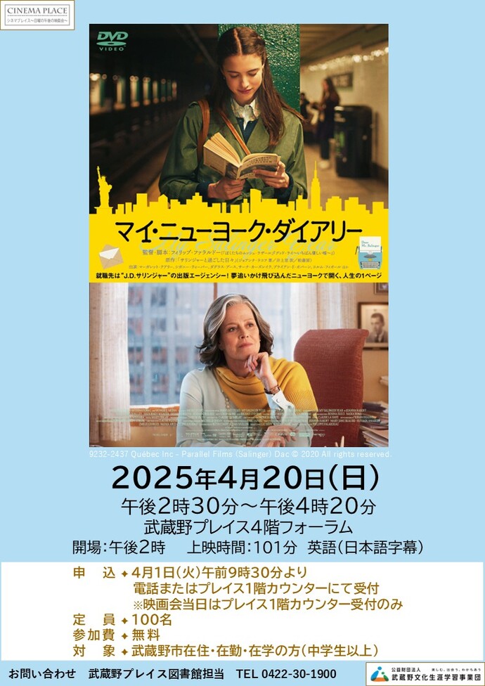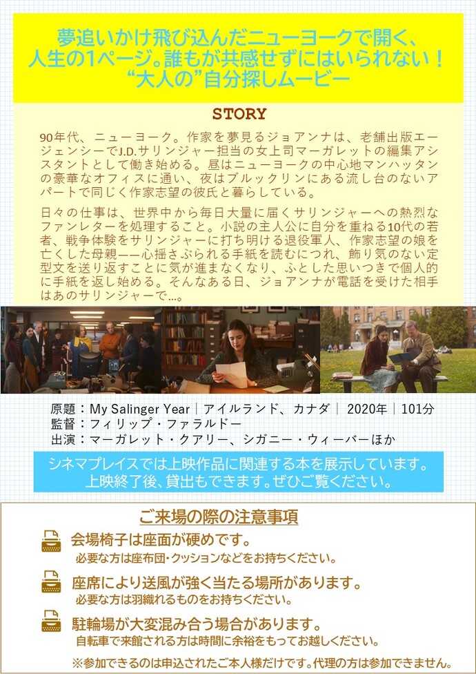 シネマプレイス~日曜の午後の映画会~『マイ・ニューヨーク・ダイアリー』