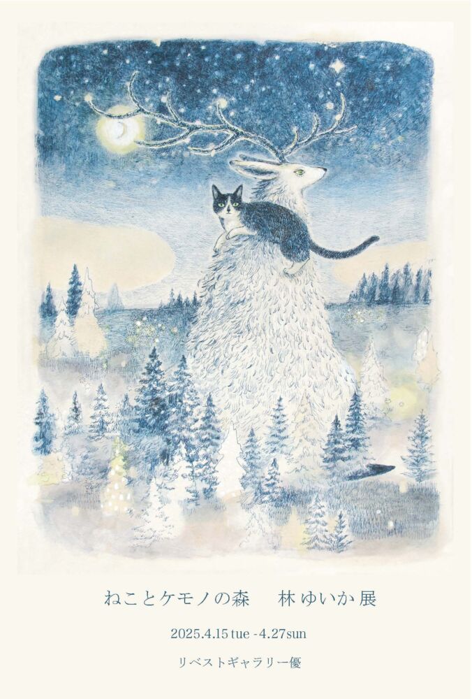 ねことケモノの森 林 ゆいか 展 開催日 2025年4月15日(火)〜27日(日) 時間 12:00~18:00(最終日17:00まで) 会場 リベストギャラリー優〒180-0004 東京都武蔵野市吉祥寺本町2-26-10-1F Web https://libestgallery.jp/2025-04-15/