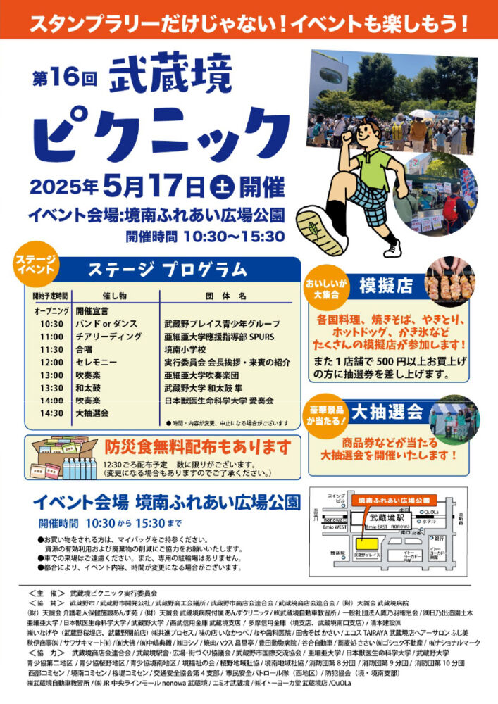 対象:スタンプラリーショッピングは、小学生以上の徒歩で回れる方 定員:スタンプラリーショッピング 600名(申込制・先着順) イベント会場:境南ふれあい広場公園