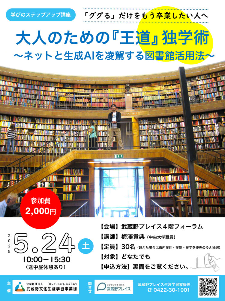 学びのステップアップ講座「大人のための『王道』独学術~ネットと生成AIを凌駕する図書館活用法~」