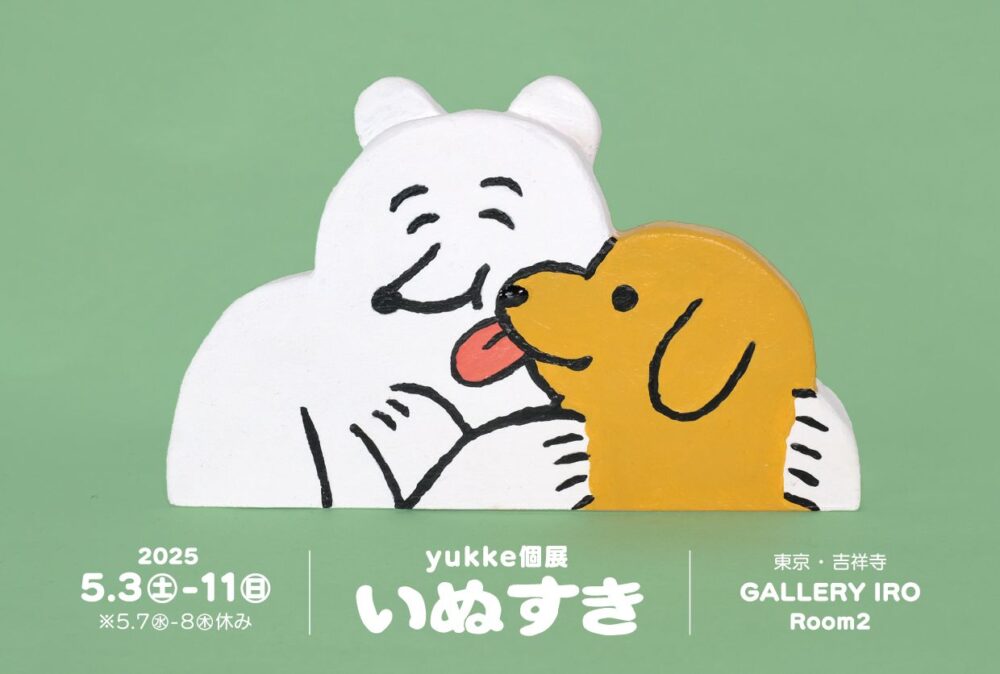 yukke個展 いぬすき 開催日 2025年5月3日(土・祝)〜11日(日) ※5月7日(水)、8日(木)休み 時間 12:00〜18:00(最終日17:00まで) 5月3日(土)、4日(日)12:00〜15:00は事前予約制 会場 GALLERY IRO〒180-0004 東京都武蔵野市吉祥寺本町1-37-7-101 吉祥寺駅より西荻窪方面へ歩いて7分程度、五日市街道沿い。 Web https://1-6.jp/yukke