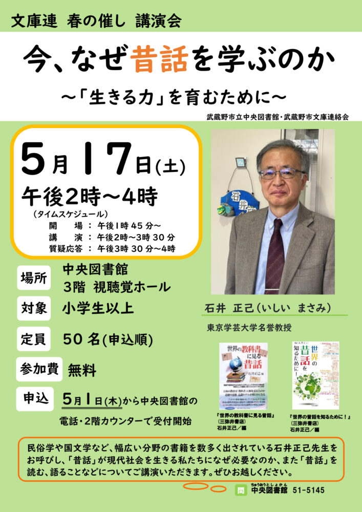 文庫連 春の催し 講演会「今、なぜ昔話を学ぶのか ~「生きる力」を育むために~」