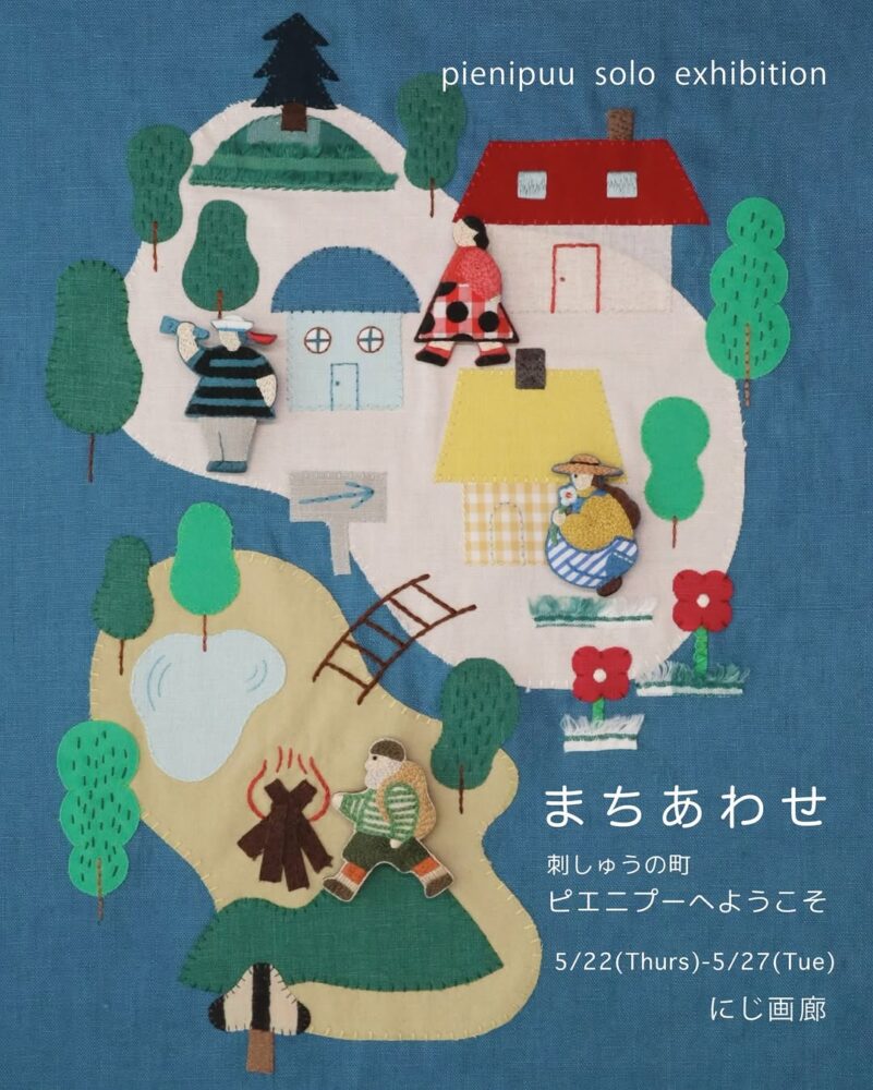 pienipuu個展「まちあわせ」(刺繍の町 ピエニプー へようこそ!) 開催日 2025年5月22日(木)〜27日(火) ※会期中無休 時間 12:00〜20:00(最終日18:00まで) 会場 にじ画廊〒180‐0004 東京都武蔵野市吉祥寺本町2‐2‐10 JR中央線 吉祥寺駅より徒歩4分 Web http://nijigaro.com/minispace.html Instagram @__pieni_puu__