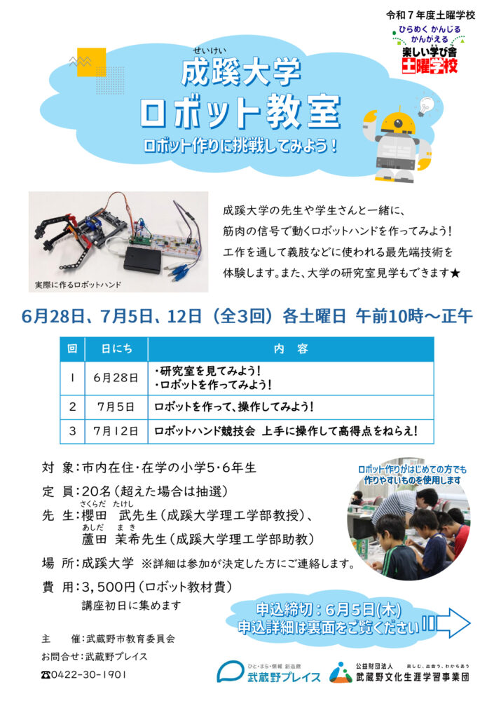 3,500円(教材費) 対象:武蔵野市内在住・在学の小学5・6年生 定員:20名