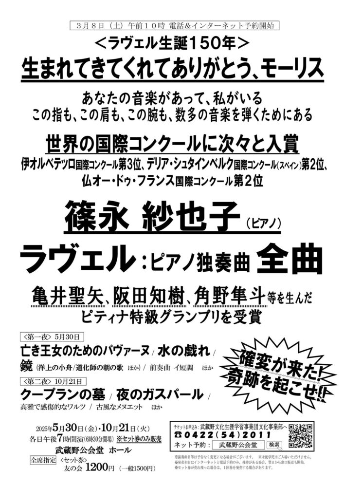 篠永紗也子 ラヴェル:ピアノ独奏曲全曲演奏会