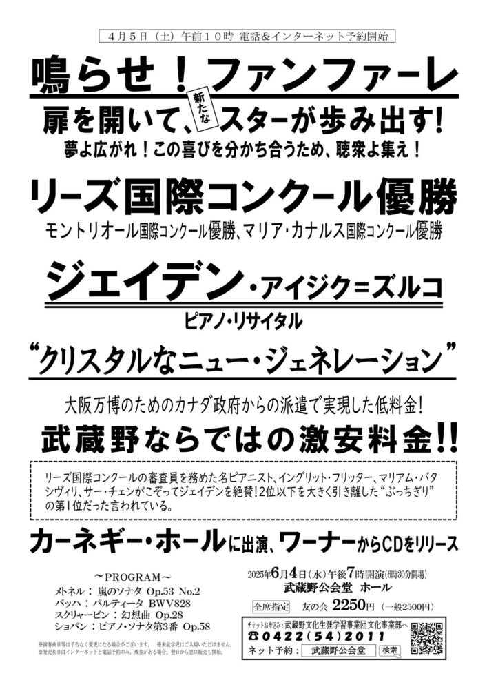 ジェイデン・アイジク=ズルコ ピアノ・リサイタル