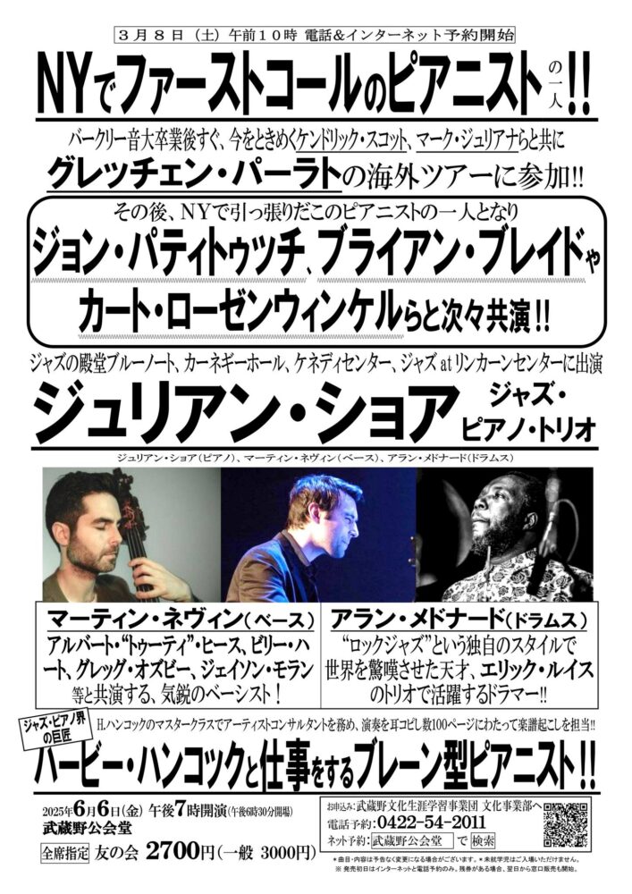 ジュリアン・ショア(ピアノ) マーティン・ネヴィン(ベース) アラン・メドナード(ドラムス)