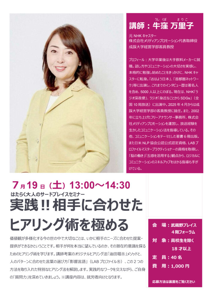 はたらく大人のサードプレイスセミナー「実践‼相手に合わせたヒアリング術を極める」