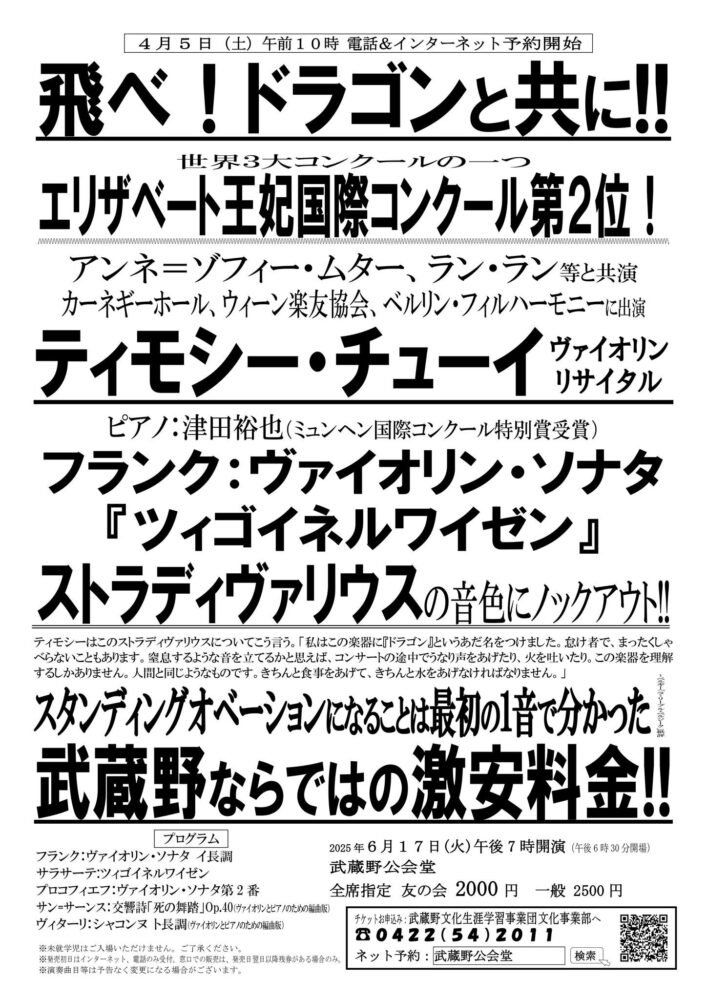 ティモシー・チューイ ヴァイオリン・リサイタル