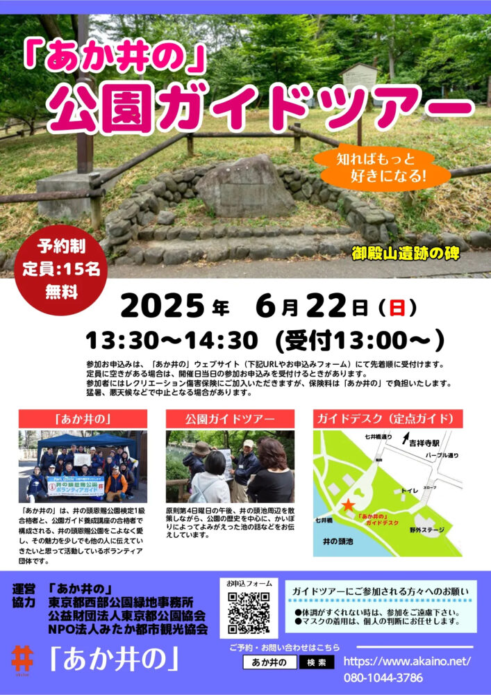 [運営]井の頭恩賜公園ボランティアガイド「あか井の」 [協力]東京都西部公園緑地事務所/(公財)東京都公園協会/NPO法人みたか都市観光協会