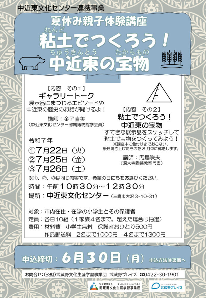夏休み親子体験講座 粘土でつくろう!中近東の宝物