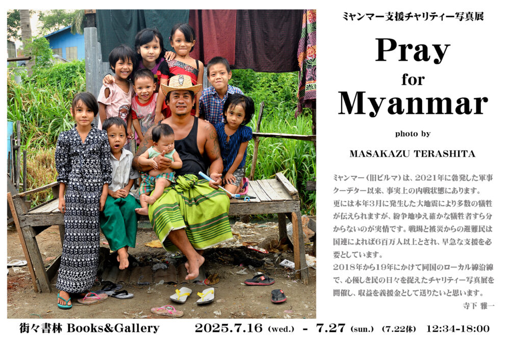 写真家・寺下雅一さんによるミャンマー救援チャリティー写真展「Pray for Myanmar」が、2025年7月16日(水)から街々書林ギャラリーで開催されます。