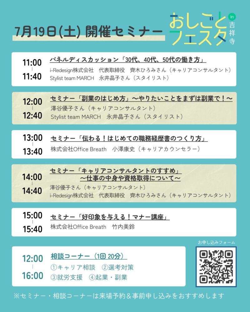 参加無料 会場:武蔵野商工会館4階 対象:武蔵野・三鷹エリアで働きたい方どなたでも(お子様連れ、ベビーカーOK)※入退場自由