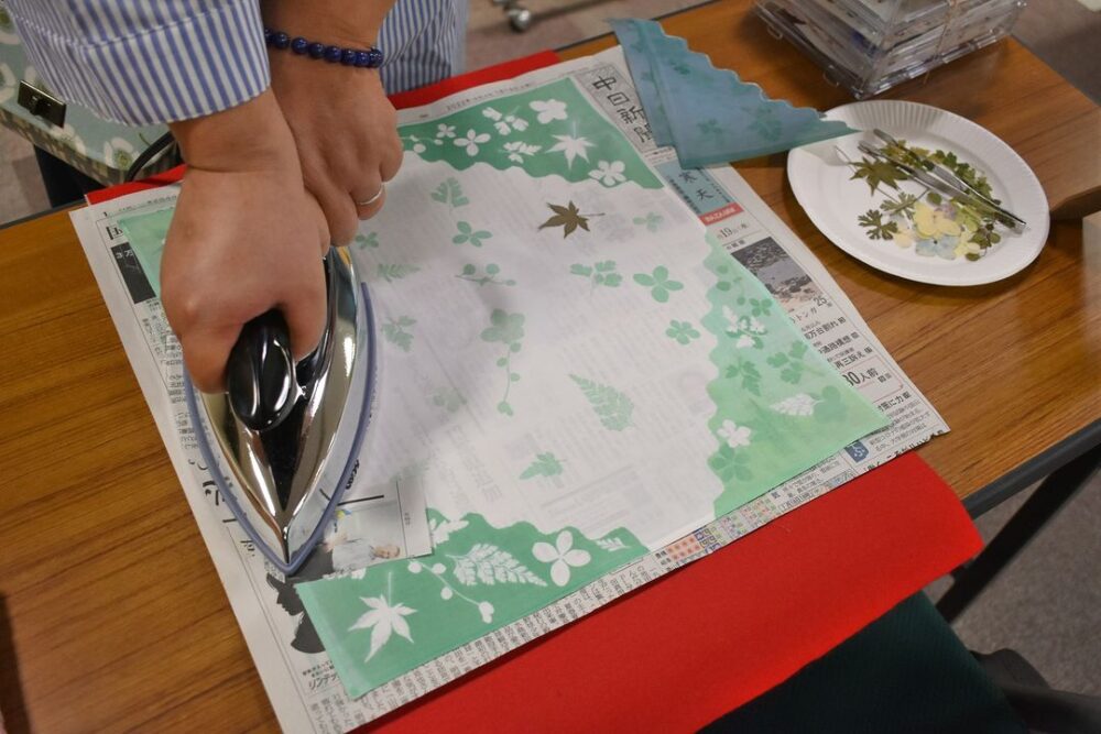 花や葉などの自然素材とアイロンを使って、水も空気も汚さない環境にやさしい染色を体験します。世界に一つだけのオリジナルハンカチを染め上げよう。