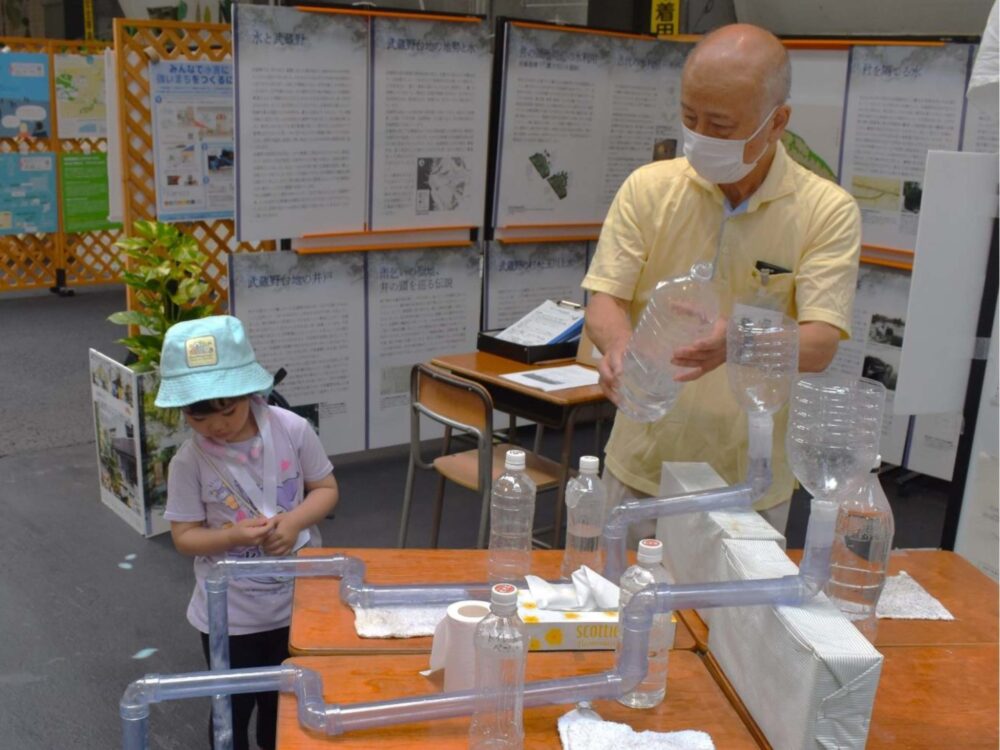 「詰まらん菅」を展示し、下水に流してはいけないものを実験・実演します。