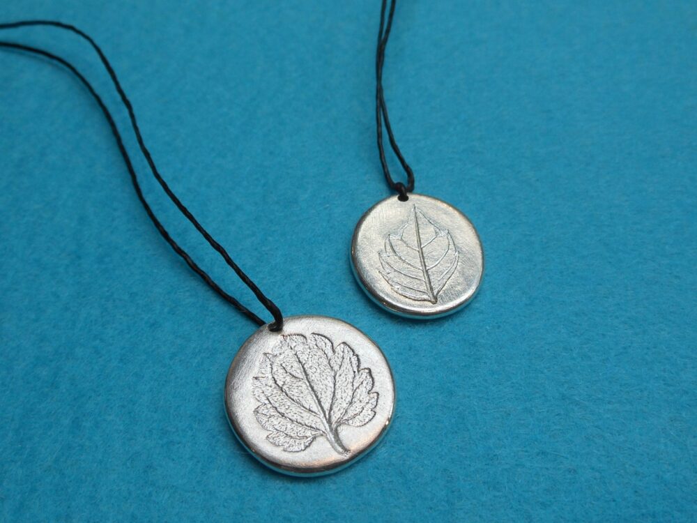 身近な都市鉱山で産出されたリサイクル銀粘土を使って、好きな葉っぱを選んで模様をつくり、環境にやさしいオリジナル純銀チャームをつくろう。