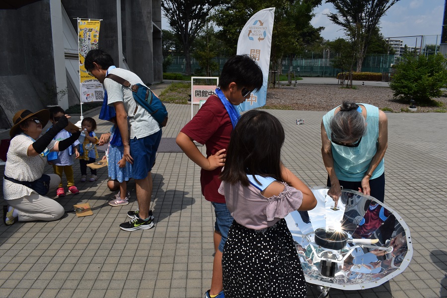太陽光でソーラークッキング(ポップコーン、リンゴのシナモン煮)を作ります。そのほか、太陽光を使ってソーラーカーを動かしたり、虫メガネで遊びます。