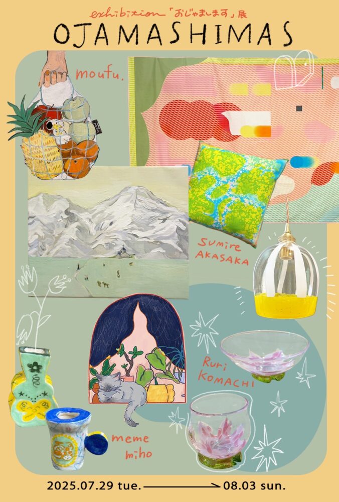 4人展「OJAMASHIMASU」 開催日 2025年7月29日(水)〜8月3日(日) 時間 11:00~19:00(最終日17:00まで) 会場 gallery re:tail〒180-0004 東京都武蔵野市吉祥寺本町3-12-9 潤マンション103 Web http://thetail.jp/archives/16729