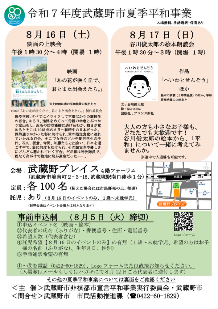 「令和7年度武蔵野市夏季平和事業申込フォーム」または