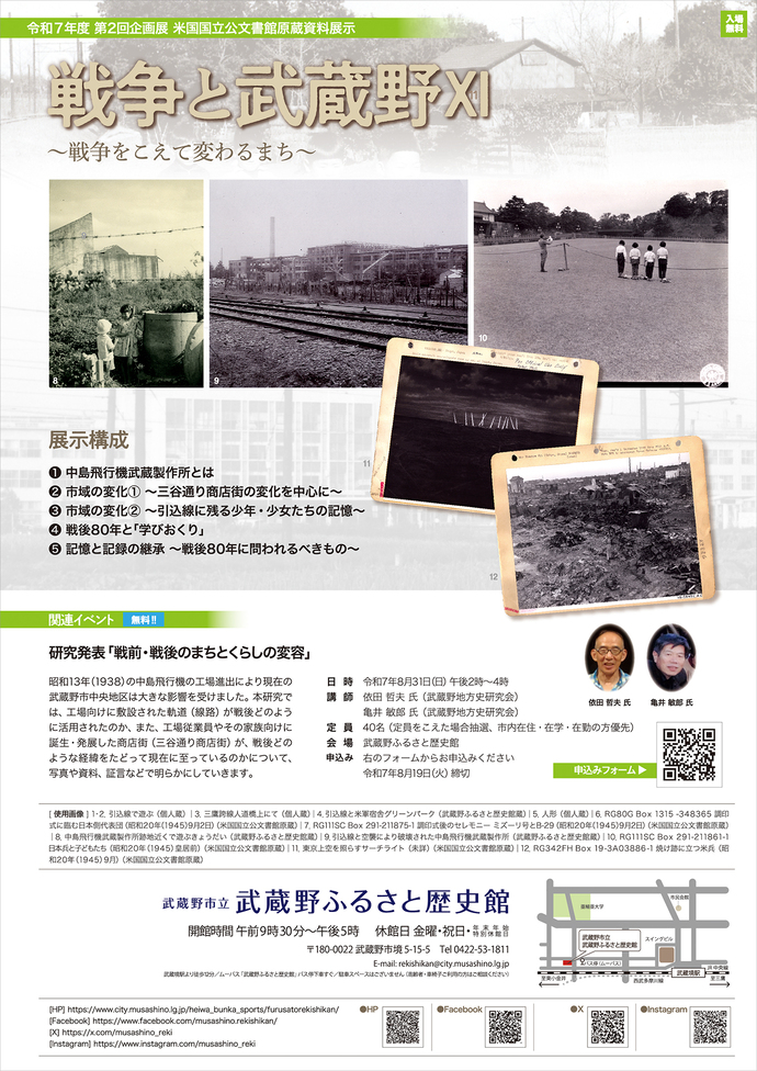 企画展「戦争と武蔵野 11 ~戦争をこえて変わるまち~」関連研究発表会「戦前・戦後のまちとくらしの変容」