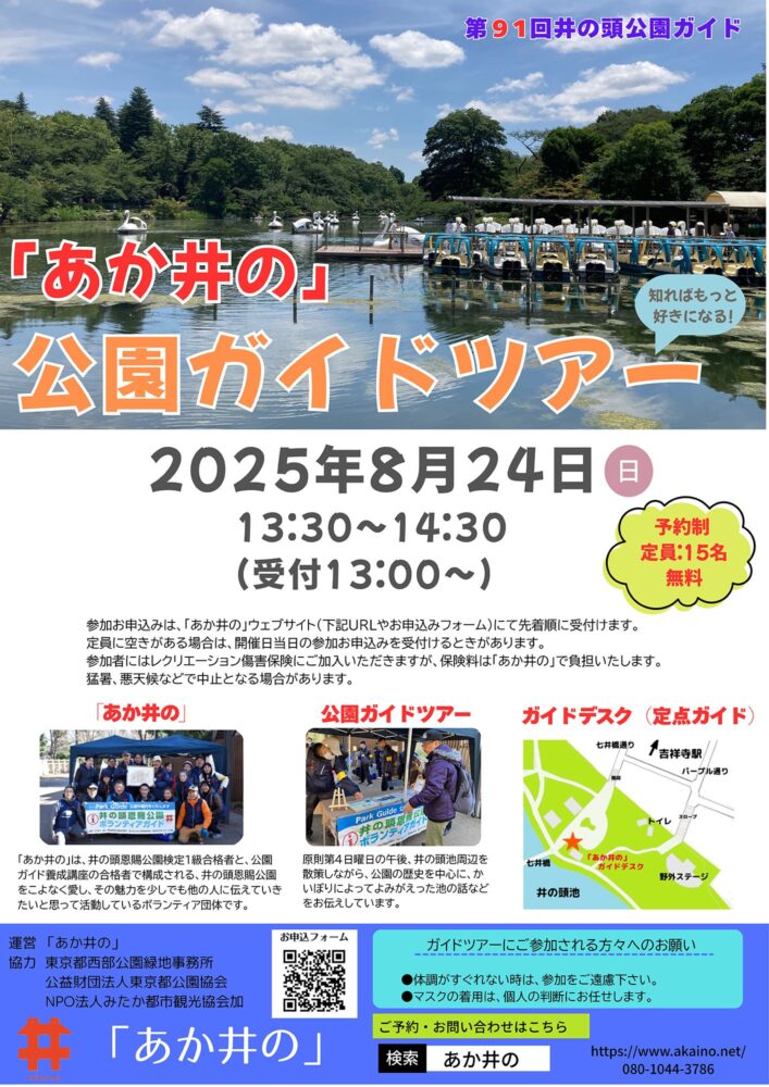 [運営]井の頭恩賜公園ボランティアガイド「あか井の」 [協力]東京都西部公園緑地事務所/(公財)東京都公園協会/NPO法人みたか都市観光協会