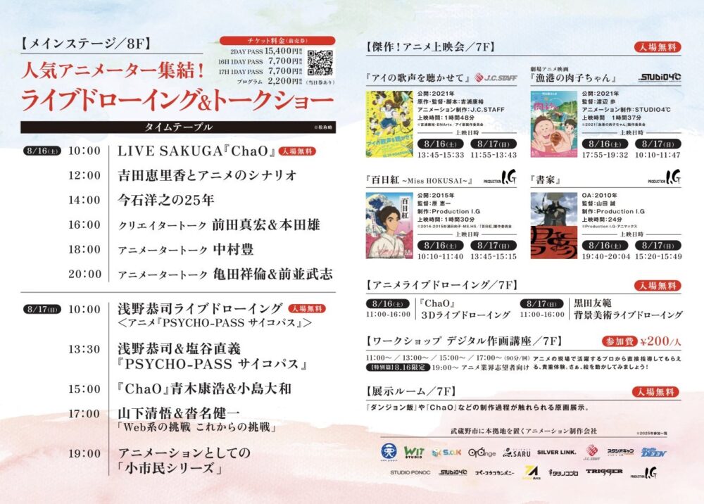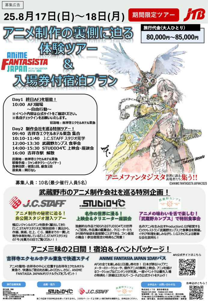 [主催]ANIME FANTASISTA JAPAN 実行委員会 [後援]武蔵野市/武蔵野商工会議所/武蔵野市観光機構/武蔵野市民社会福祉協議会 [協力]アニメノムサシノ/武蔵野市内のアニメーション制作会社 [協賛]武蔵境自動車教習所/BeyondC.