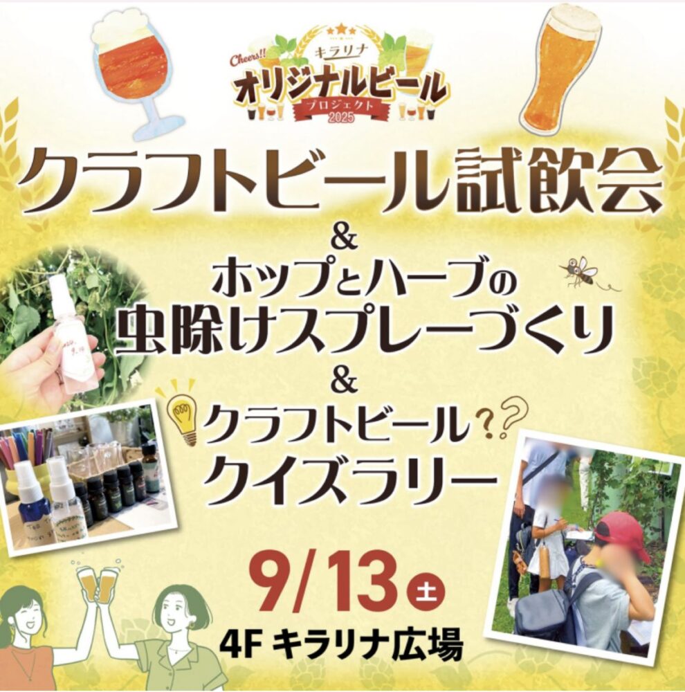 クラフトビール試飲会 開催日 2025年9月13日(土) 時間 13:00~15:00 ※なくなり次第終了 料金など 無料 会場:4階キラリナ広場 会場 キラリナ京王吉祥寺〒180-0003 東京都武蔵野市吉祥寺南町2丁目1−25 吉祥寺駅直結 Web https://www.kirarinakeiokichijoji.jp/topics/detail/?cd=000440
