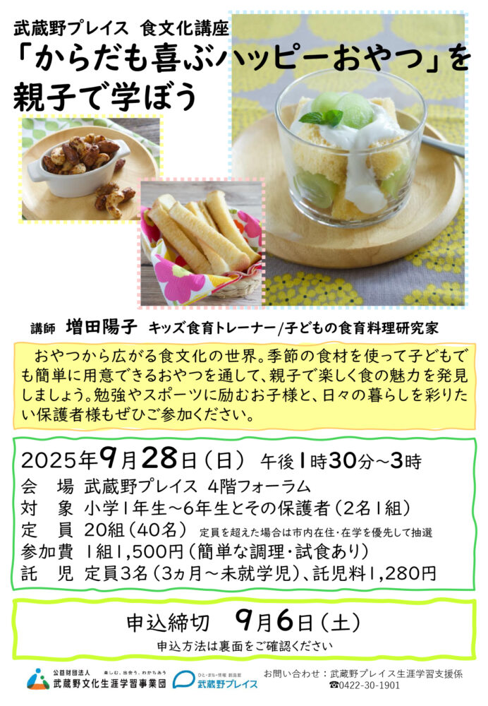 武蔵野プレイス食文化講座「『からだも喜ぶハッピーおやつ』を親子で学ぼう」