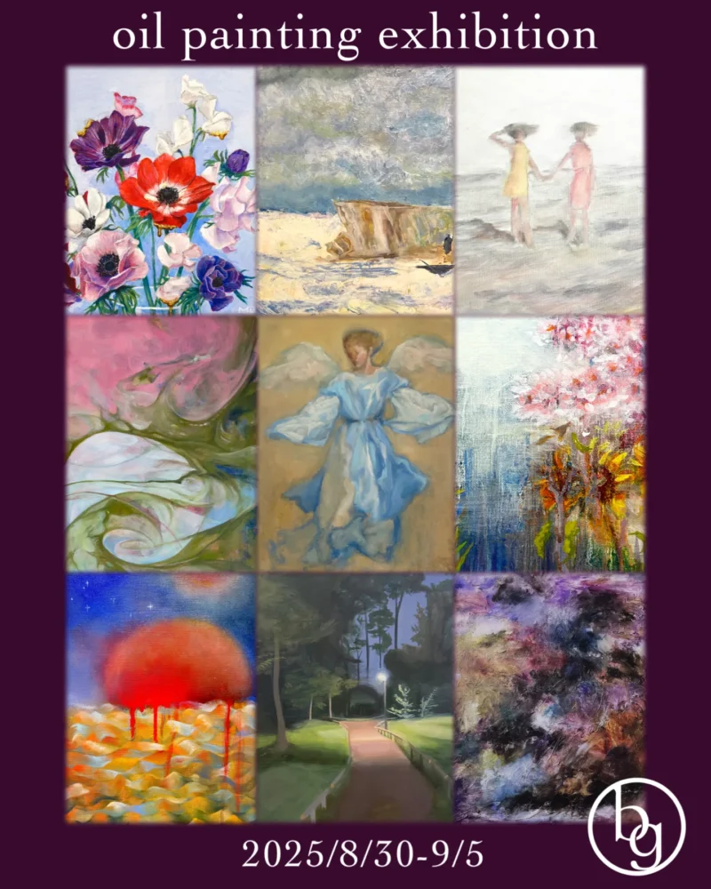 oil painting exhibition 開催日 2025年8月30日(土)〜9月5日(金)※水曜定休 時間 11:00〜19:00(初日12:00から) 会場 between gallery東京都 三鷹市井の頭3-12-13 井之頭パークビル102 Web https://betweengallery.com/oilpaintingexhibition Instagram @between.gallery