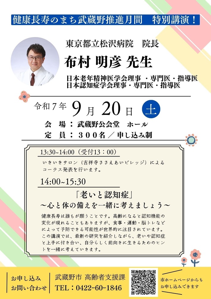 無料 対象:武蔵野市内在住・在勤・在学の方 定員:300名(申込制・先着順) ※手話通訳あり