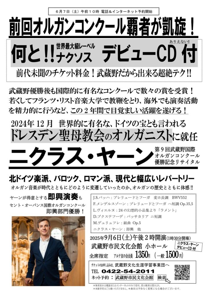 《オルガン・ウィークエンド》 ニクラス・ヤーン 第9回武蔵野国際オルガンコンクール優勝記念リサイタル