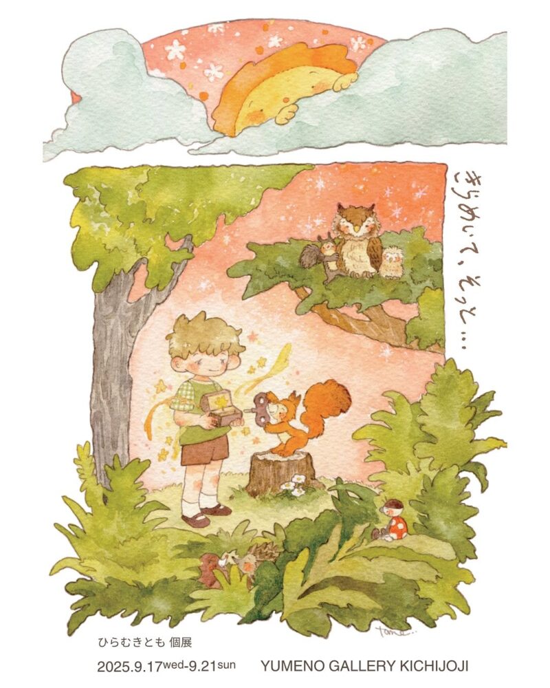 ひらむきとも 個展「きらめいて、そっと・・・」 開催日 2025年9月17日(水)〜21日(日) 時間 12:00〜20:00(最終日17:00まで) 会場 ユメノギャラリー吉祥寺〒180-0002 東京都武蔵野市吉祥寺東町1-5-13 はぴすと押山2F Web https://www.yumenogallerykichijoji.com/schedule/ Instagram @hiramukitomo
