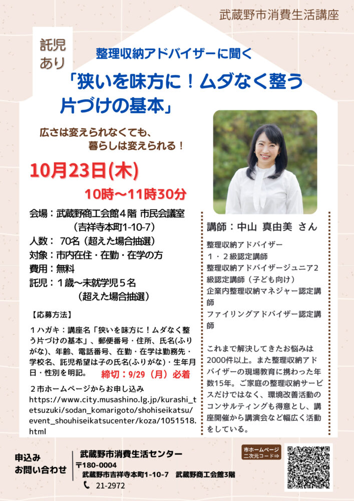 消費生活講座 「狭いを味方に!ムダなく整う片づけの基本」