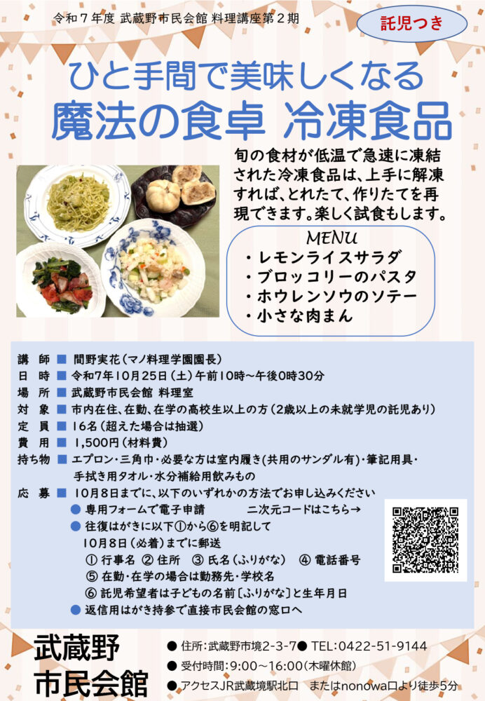 令和7年度 料理講座 第2期「ひと手間で美味しくなる魔法の食卓 冷凍食品」