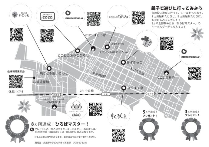 対象:武蔵野市内在住の未就学児、妊婦、そのパートナー 参加施設:0123吉祥寺/0123はらっぱ/境こども園いこっと/すくすく泉/みずきっこ/おもちゃのぐるりん/とことこおやこひろば/ひまわりこそだてひろばRAKURU ※桜堤児童館は休館中のため実施していません。