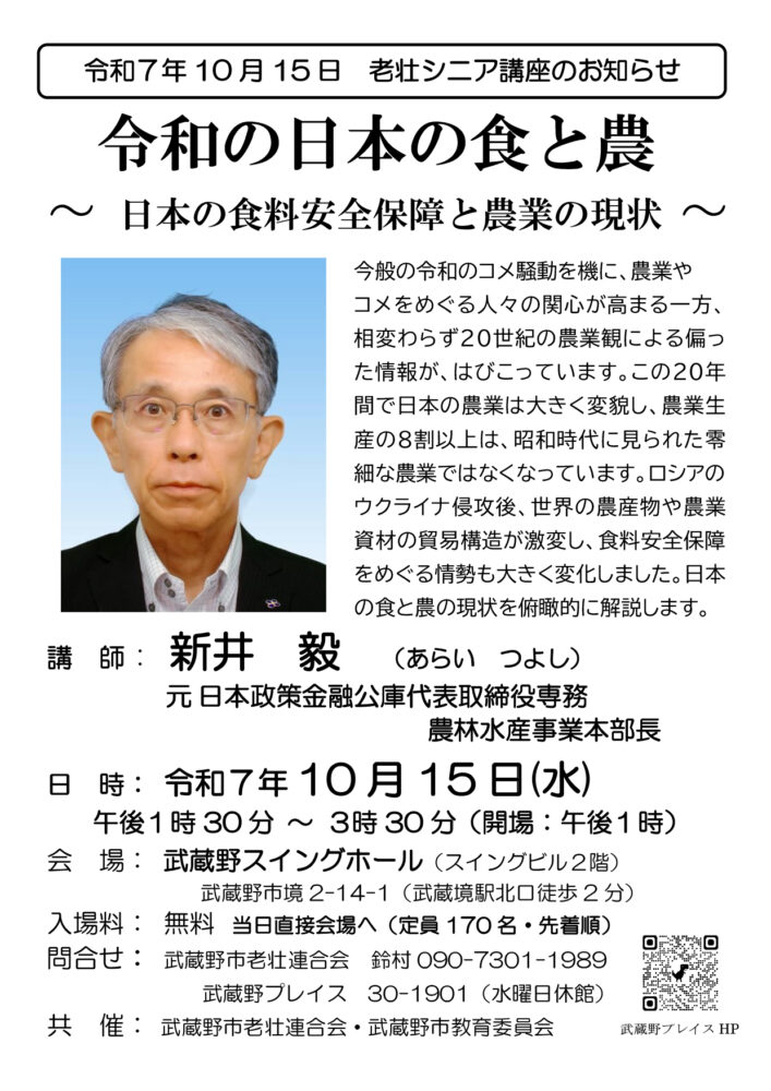 講師: 新井 毅(元株式会社日本政策金融公庫代表取締役専務農林水産事業本部長)