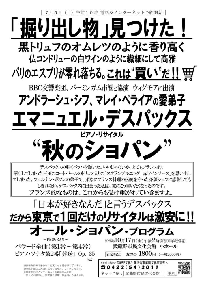 F.F.ショパン: 子守歌 変ニ長調 Op. 57 舟歌 嬰ヘ長調 Op. 60 ピアノ・ソナタ第2番 変ロ短調「葬送」 Op. 35 休憩 バラード第1番 ト短調 Op. 23 バラード第2番 ヘ長調 Op. 38 バラード第3番 変イ長調 Op. 47 バラード第4番 ヘ短調 Op. 52