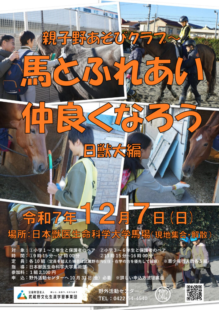 親子野あそびクラブ~馬とふれあい仲良くなろう 日獣大編