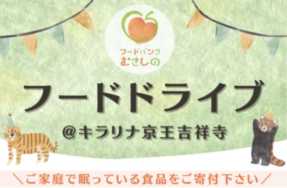 フードドライブ 開催日 2025年10月18日(土) 時間 11:00〜16:00 お問い合わせ 090-6509-2523 foodbank.musashino@gmail.com 会場 キラリナ京王吉祥寺〒180-0003 東京都武蔵野市吉祥寺南町2丁目1−25 吉祥寺駅直結 Web https://www.kirarinakeiokichijoji.jp/topics/detail/?cd=000459